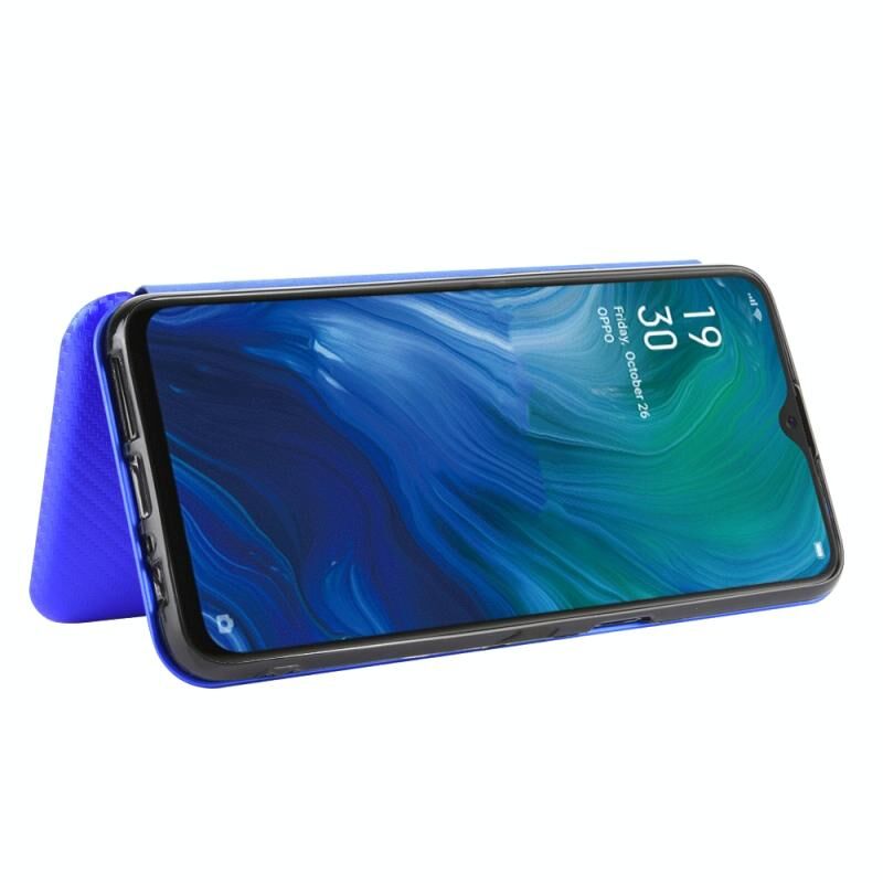 Για OPPO Reno A Carbon Fiber Υφή Οριζόντια Flip TPU + PC + PU δέρμα υπόθεση με υποδοχή κάρτας (Μπλε)
