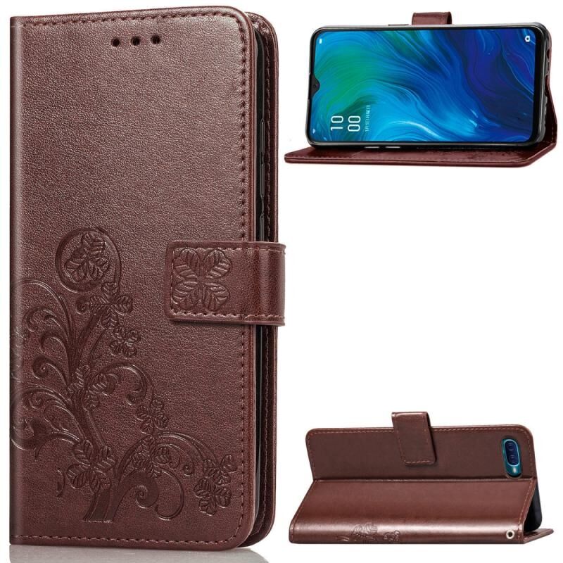 Για OPPO Reno A Θήκη Προστασίας Κινητού Δέρμα με Κούμπωμα σε Σχήμα Τριφυλλιού, Λουρί, Θήκη Καρτών, Πορτοφόλι & Λειτουργία Στήριξης (Καφέ)