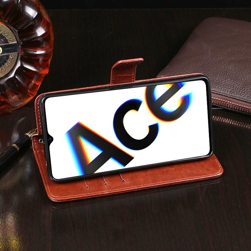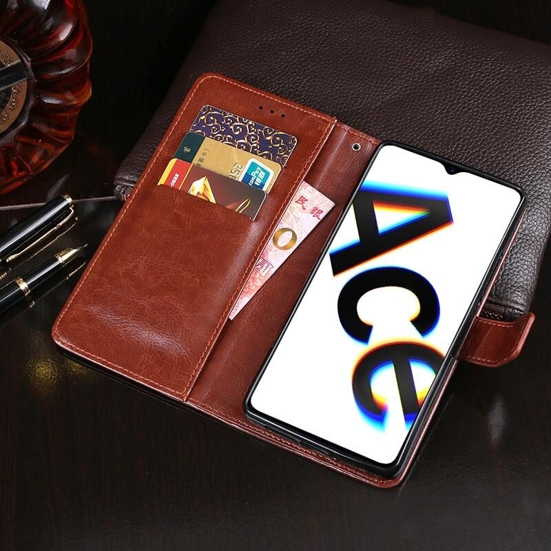 Για OPPO Reno Ace idewei Crazy Horse Υφή οριζόντια Flip δερμάτινη θήκη με θήκη & υποδοχές για κάρτες & πορτοφόλι (Μαύρο) (Μαύρο)