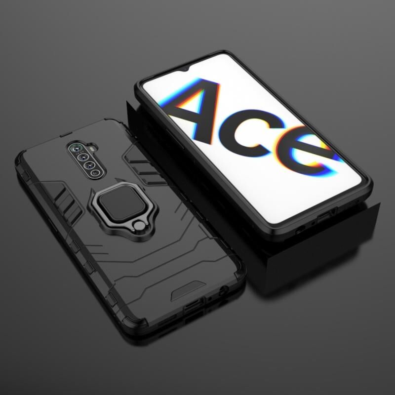 Για OPPO Reno Ace Shockproof PC + TPU Προστατευτική θήκη με μαγνητικό δαχτυλίδι Holder (Μαύρο)