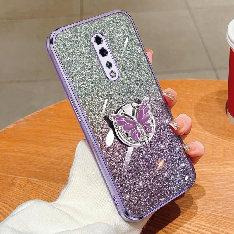 Θήκη κινητού τηλεφώνου OPPO Reno Z με επιμετάλλωση, διαβαθμισμένη λάμψη, πεταλούδα (Μωβ)