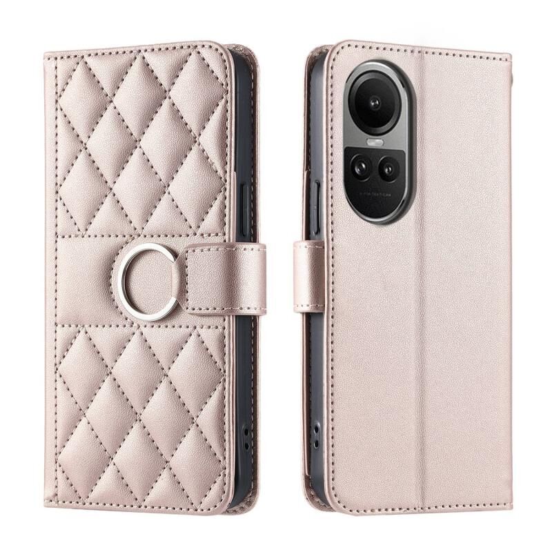 Θήκη τηλεφώνου από δέρμα με γεωμετρικό σχέδιο και μεταλλικό δακτύλιο για OPPO Reno10 /10 Pro 5G (Κόκκινο)