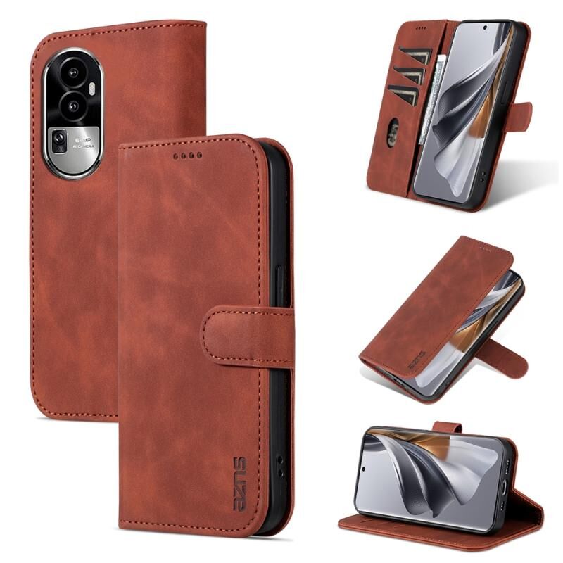 Για OPPO Reno10 / 10 Pro Global Θήκη τηλεφώνου από δέρμα με αναδιπλούμενο σχέδιο και υφή μοσχαριού AZNS (Καφέ) (Καφέ)