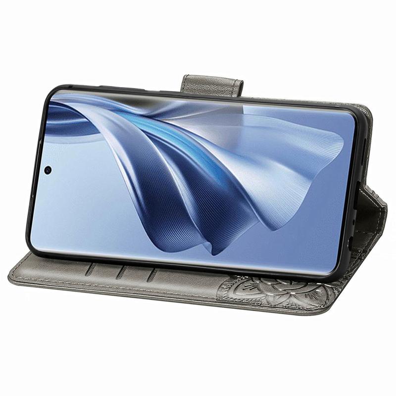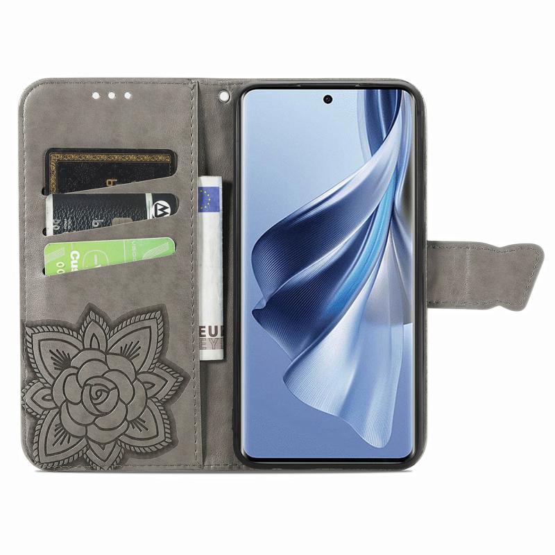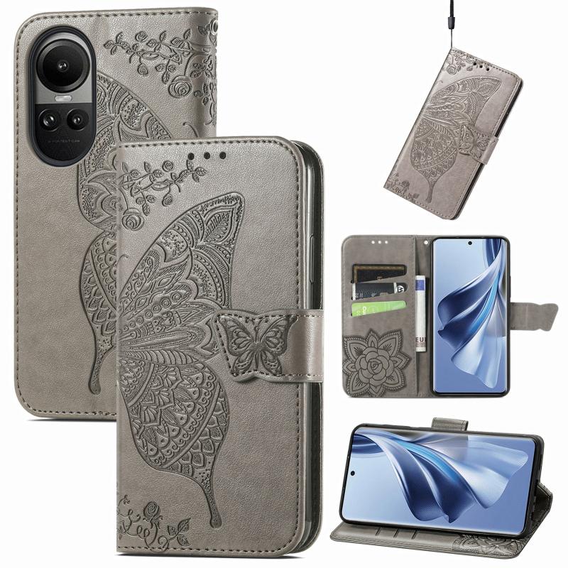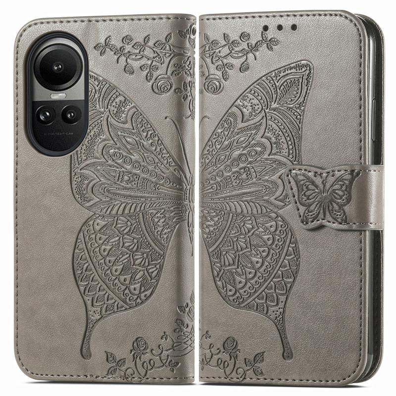 For OPPO Reno10 / 10 Pro Global Butterfly Love Flower Embossed Leather Phone Case(Grey)