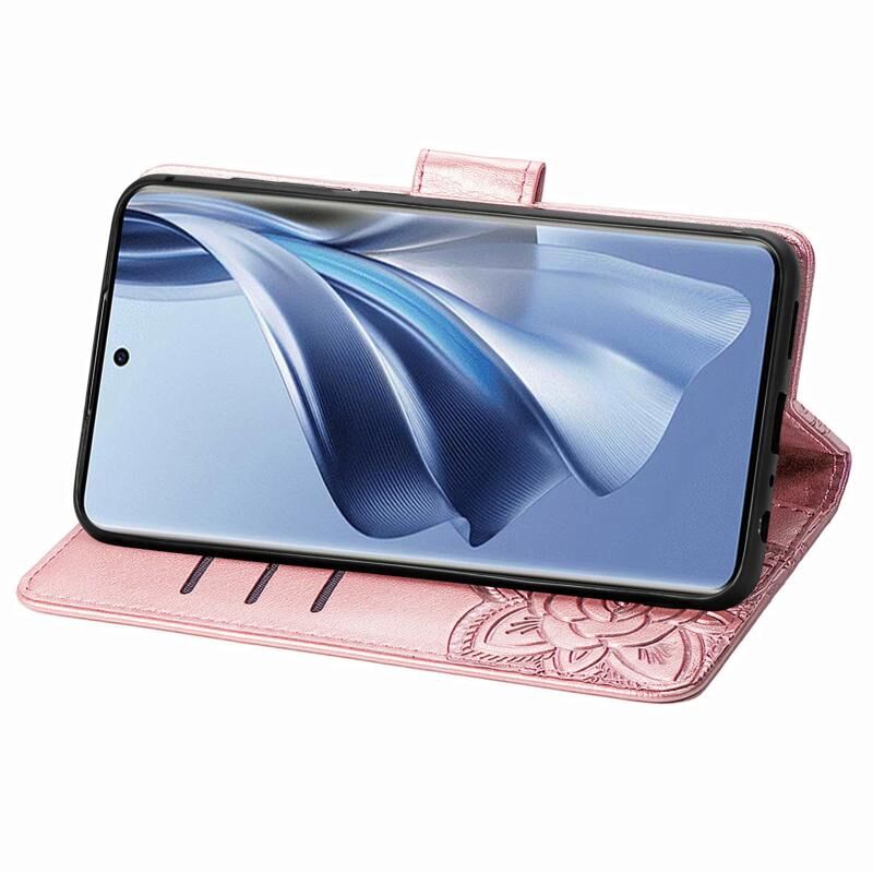 Θήκη τηλεφώνου από δέρμα με ανάγλυφο σχέδιο πεταλούδας και λουλουδιών για OPPO Reno10 / 10 Pro Global (Ροζ χρυσός)