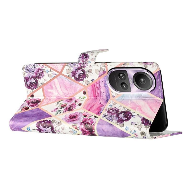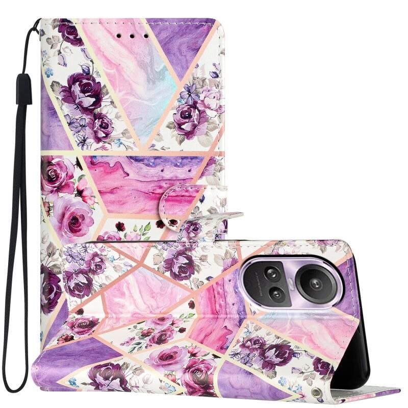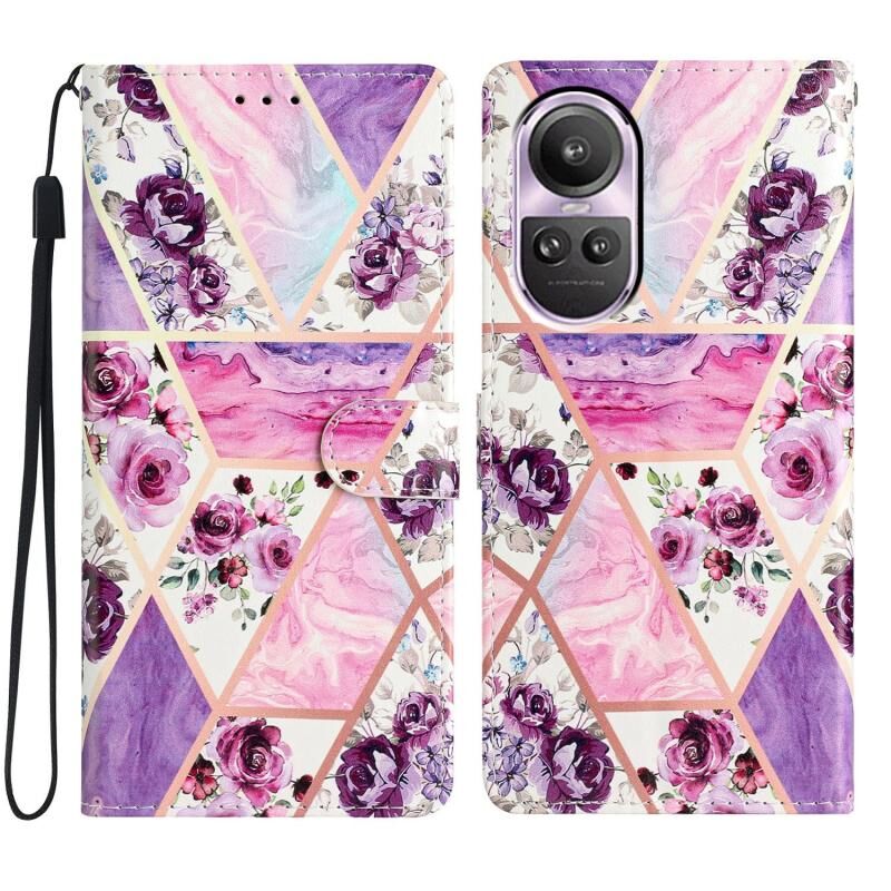 Θήκη τηλεφώνου από δέρμα με έγχρωμο σχέδιο για OPPO Reno10 /10 Pro Global (Μωβ Μάρμαρο)