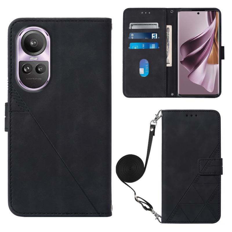 For OPPO Reno10 / 10 Pro Global Crossbody 3D Embossed Flip Leather Phone Case(Black)