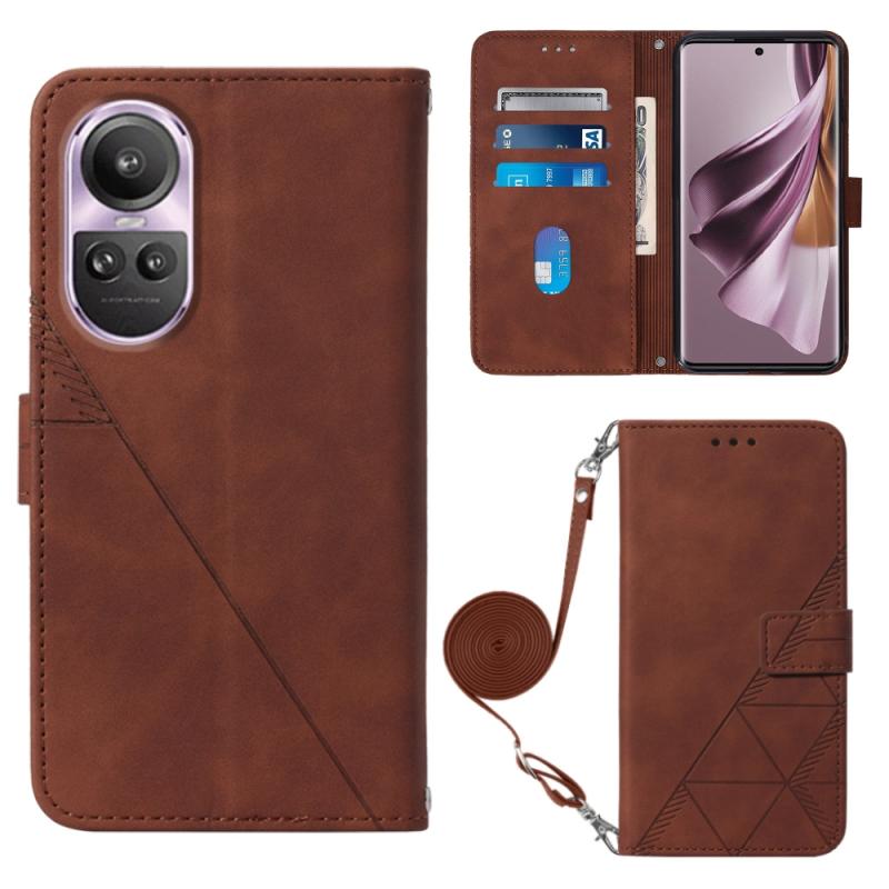For OPPO Reno10 / 10 Pro Global Crossbody 3D Embossed Flip Leather Phone Case(Brown)
