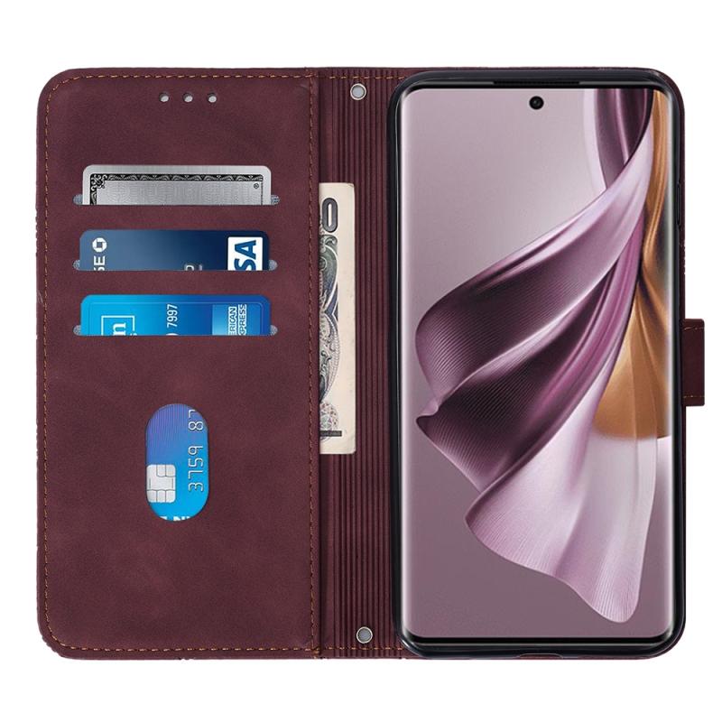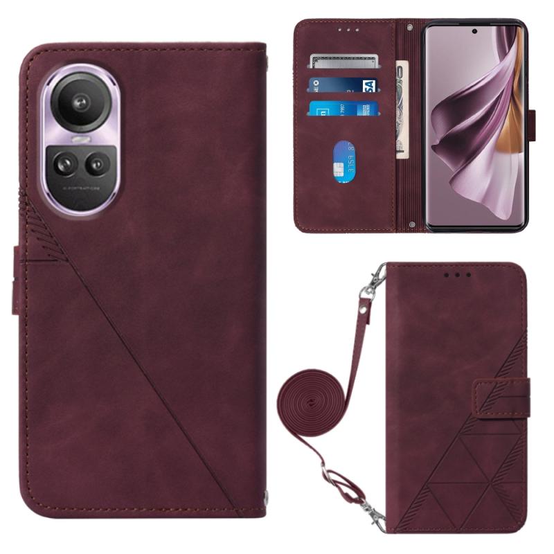 For OPPO Reno10 / 10 Pro Global Crossbody 3D Embossed Flip Leather Phone Case(Wine Red)