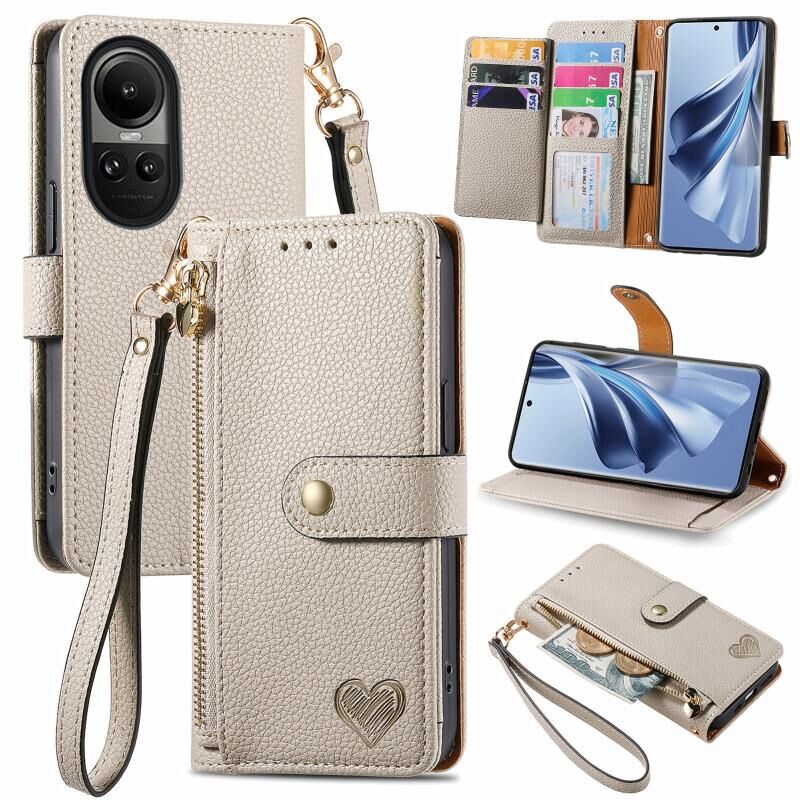 Για OPPO Reno10 / 10 Pro Παγκόσμια αγάπη φερμουάρ φερμουάρ δερμάτινη θήκη τηλεφώνου (Λευκό)