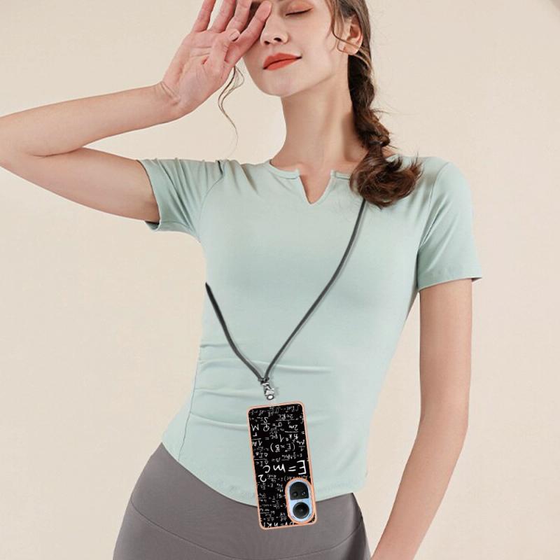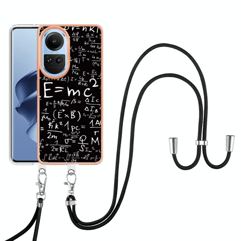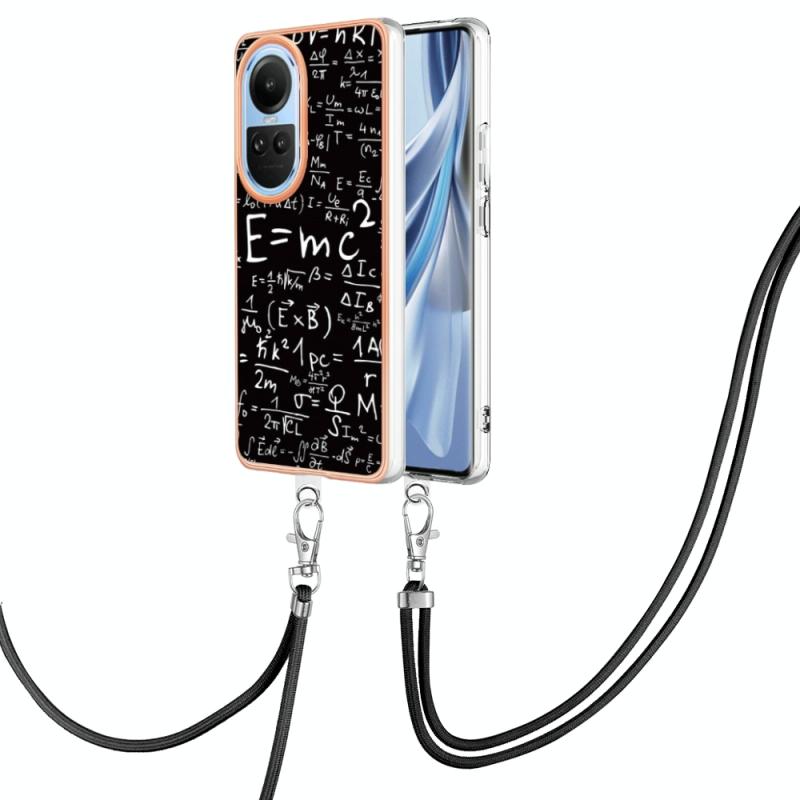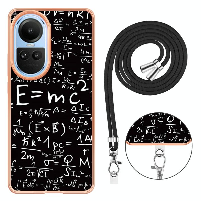 For OPPO Reno10 5G Global Electroplating Dual-side IMD Phone Case with Lanyard(Equation)