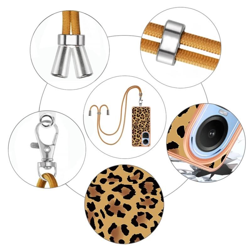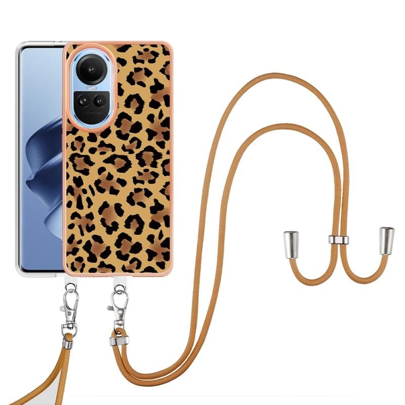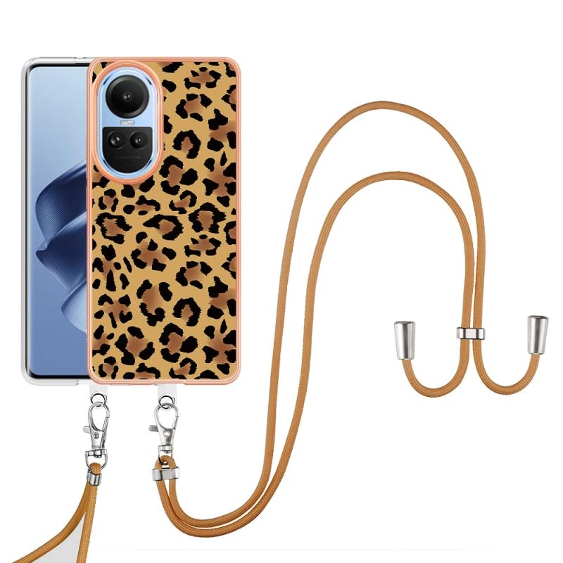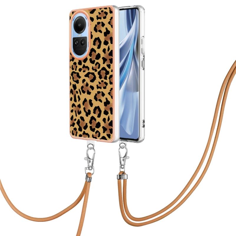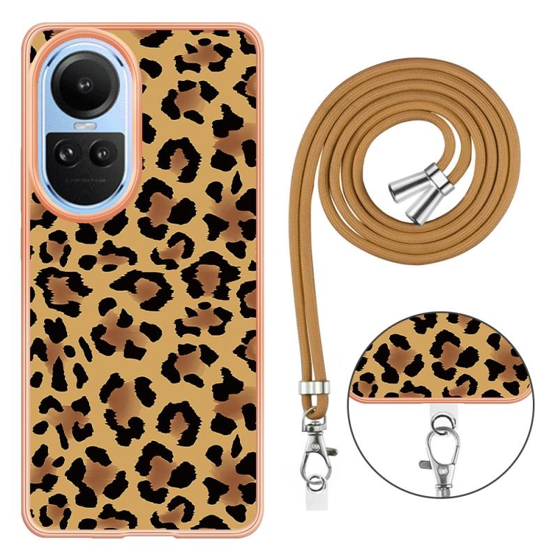 For OPPO Reno10 5G Global Electroplating Dual-side IMD Phone Case with Lanyard(Leopard Print)