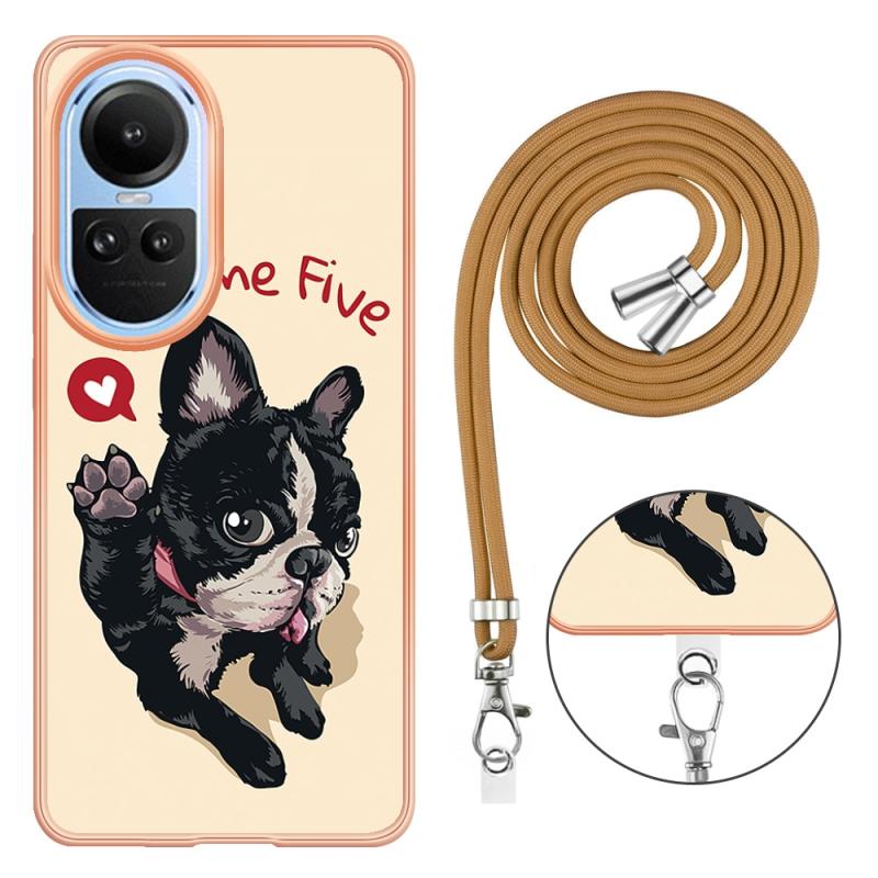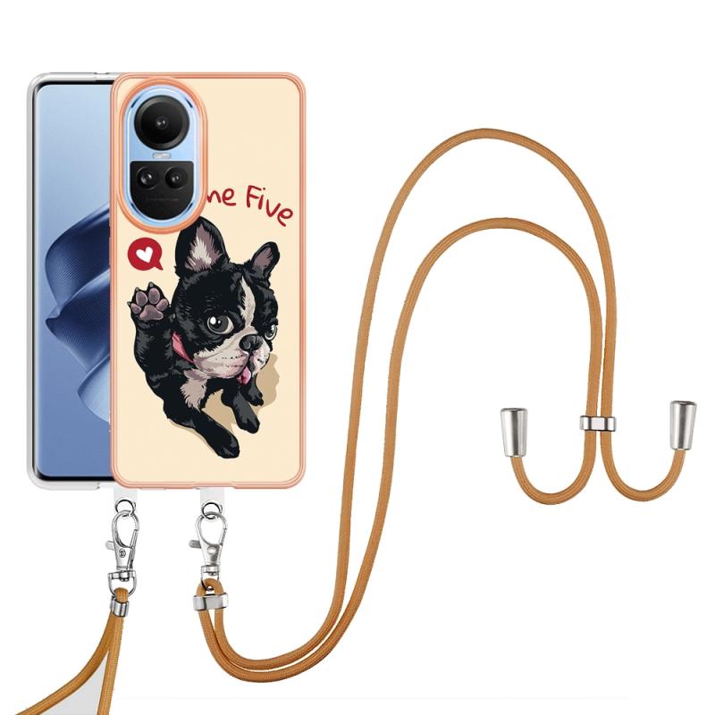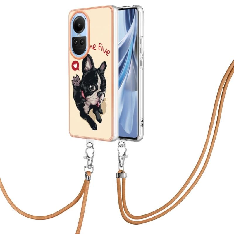 For OPPO Reno10 5G Global Electroplating Dual-side IMD Phone Case with Lanyard(Lucky Dog)