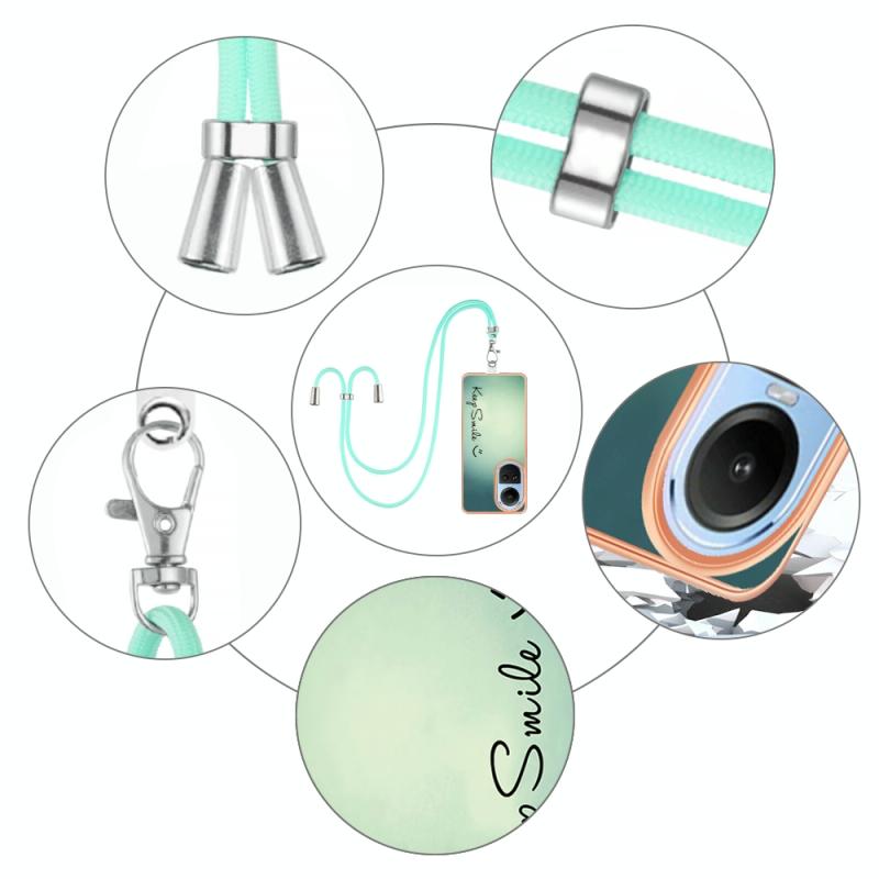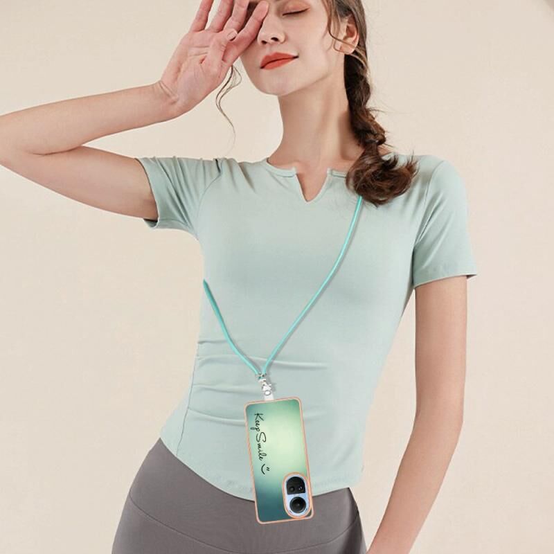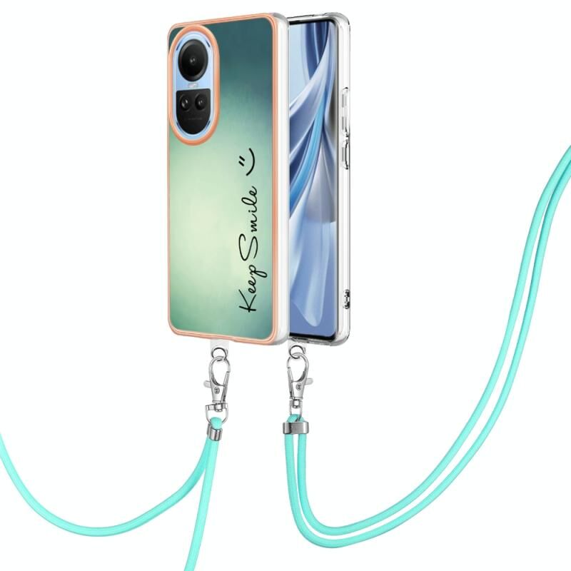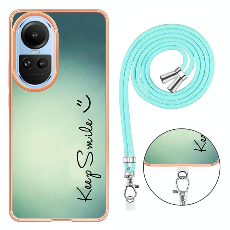 For OPPO Reno10 5G Global Electroplating Dual-side IMD Phone Case with Lanyard(Smile)