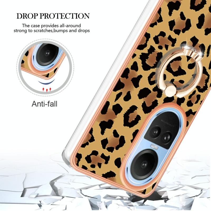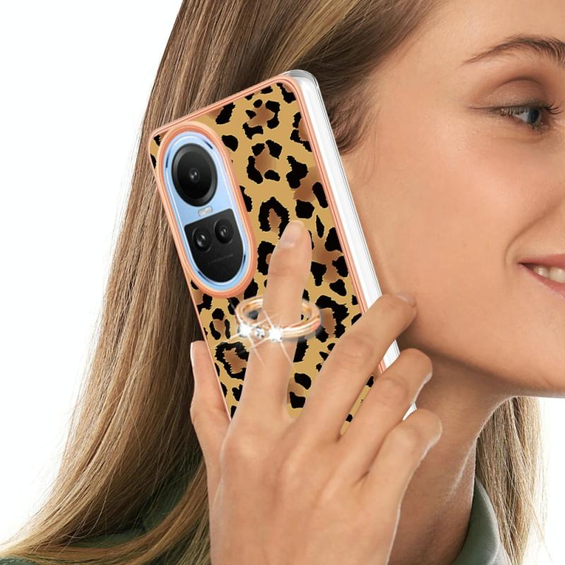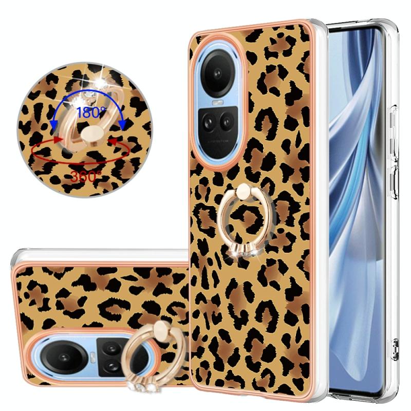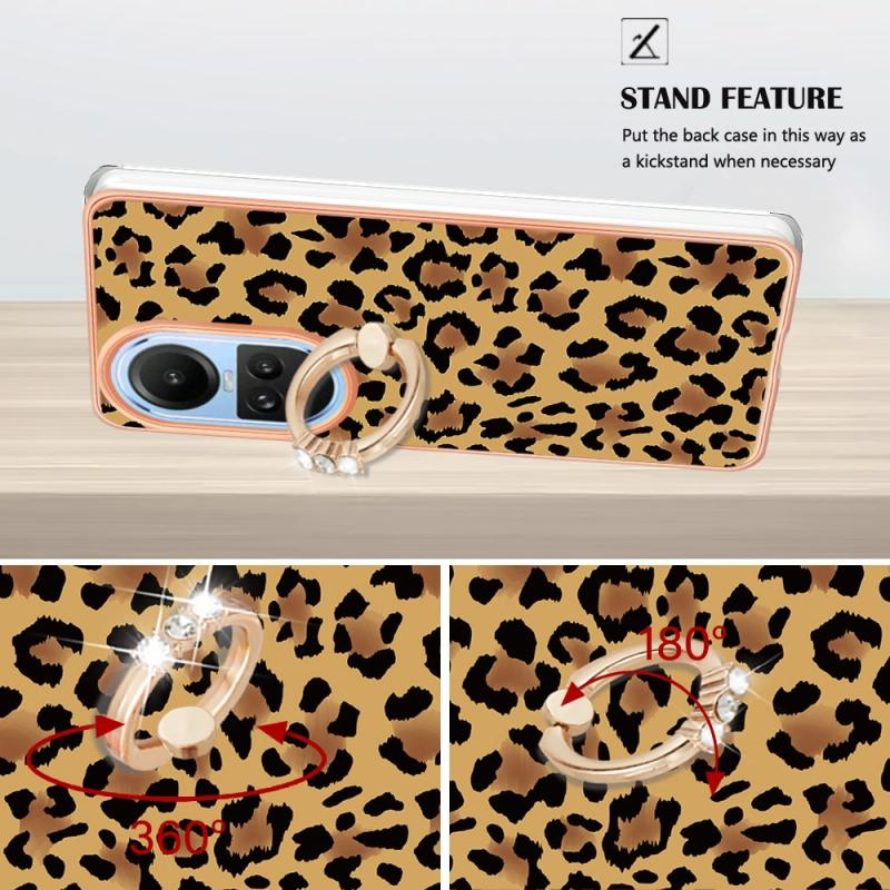 For OPPO Reno10 5G Global Electroplating Dual-side IMD Phone Case with Ring Holder(Leopard Print)