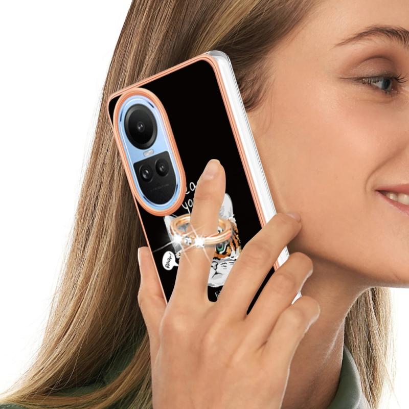 For OPPO Reno10 5G Global Electroplating Dual-side IMD Phone Case with Ring Holder(Natural Growth)