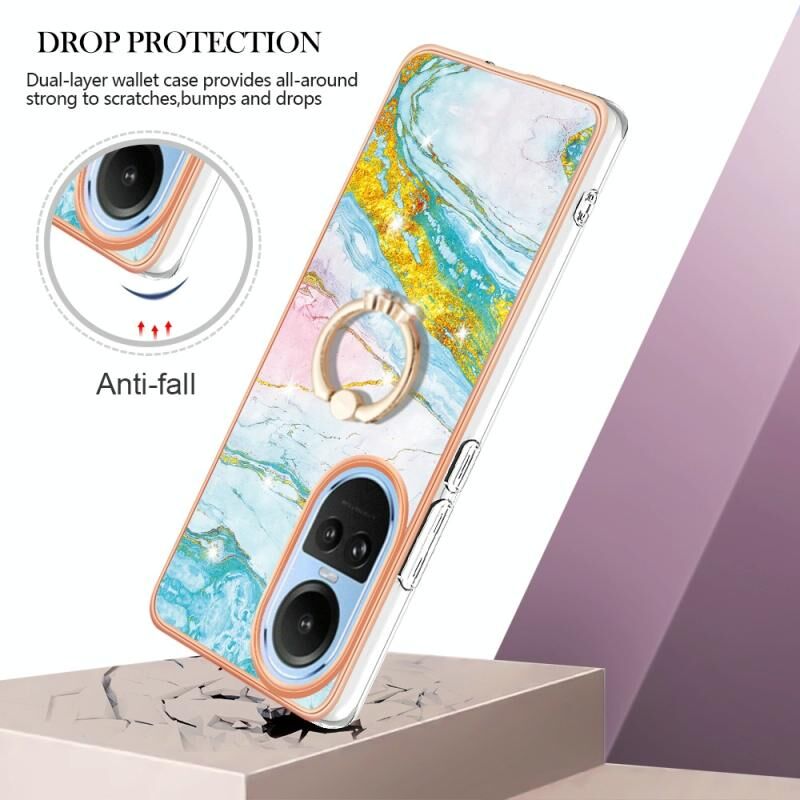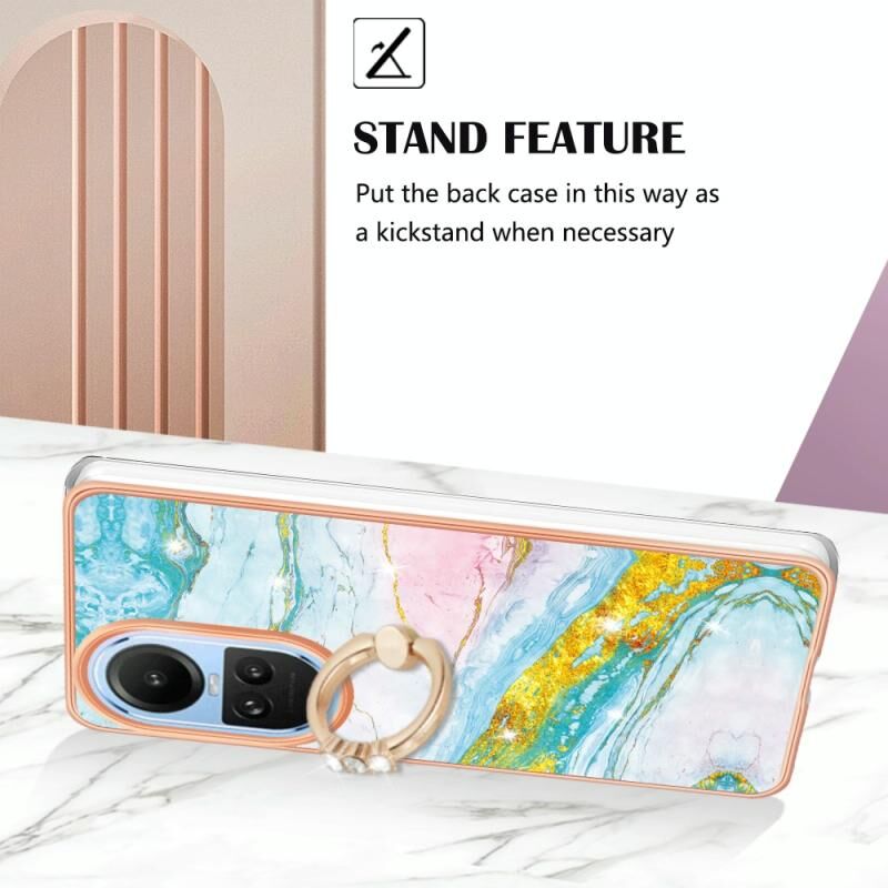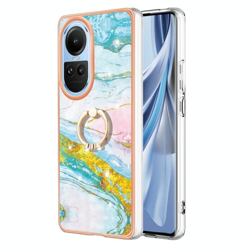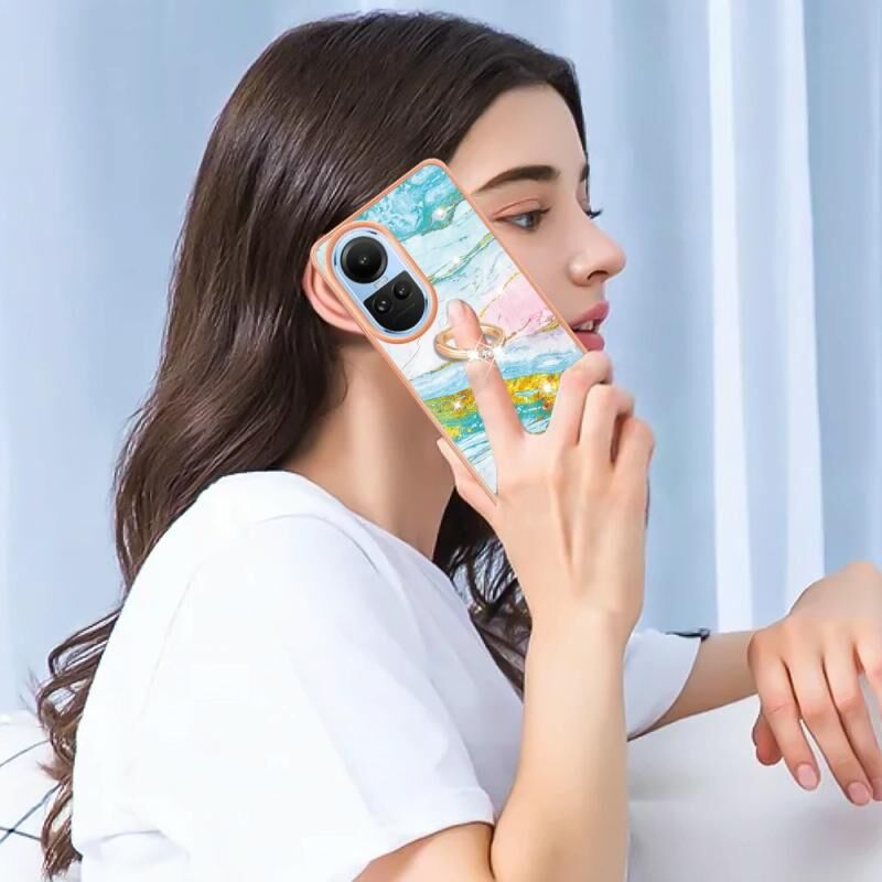 Θήκη τηλεφώνου OPPO Reno10 5G Global Electroplating Marble IMD TPU με Δακτύλιο Στήριξης (Πράσινο 004)