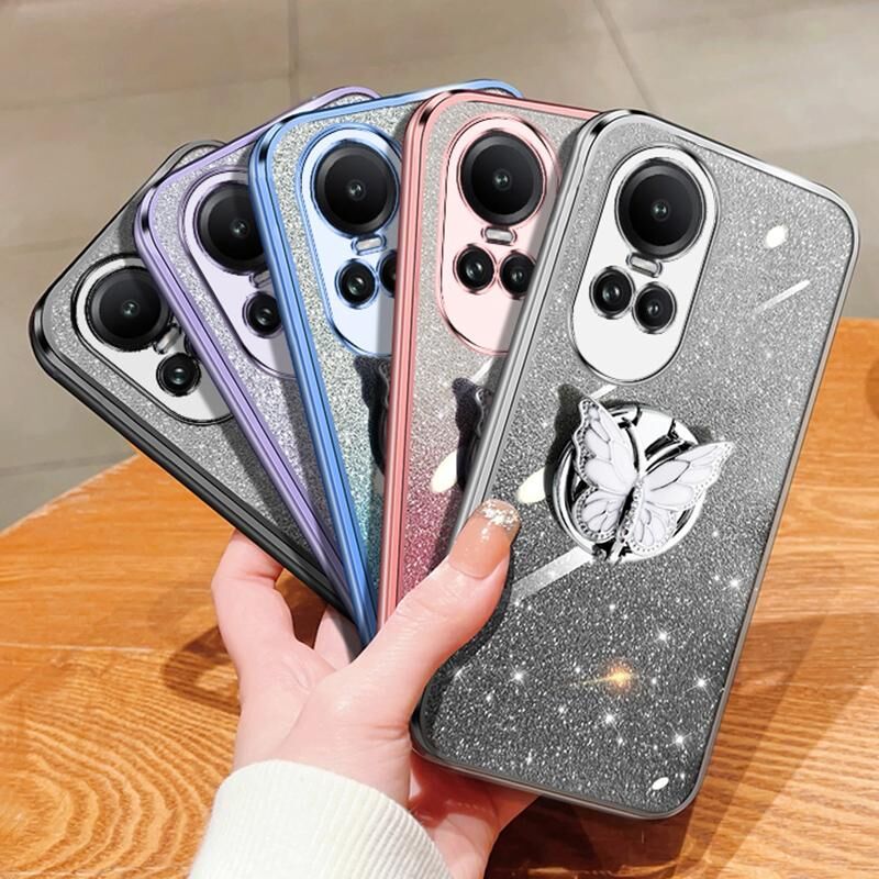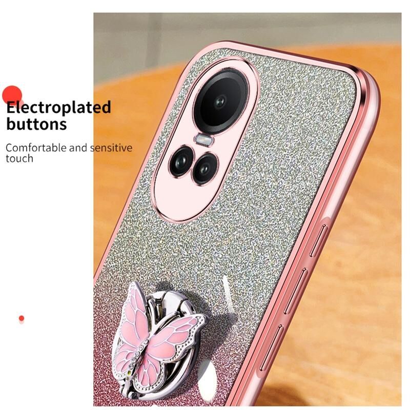 Θήκη τηλεφώνου TPU με σχέδιο πεταλούδας σε αποχρώσεις gradient και γκλίτερ για OPPO Reno10 5G (Μαύρο)
