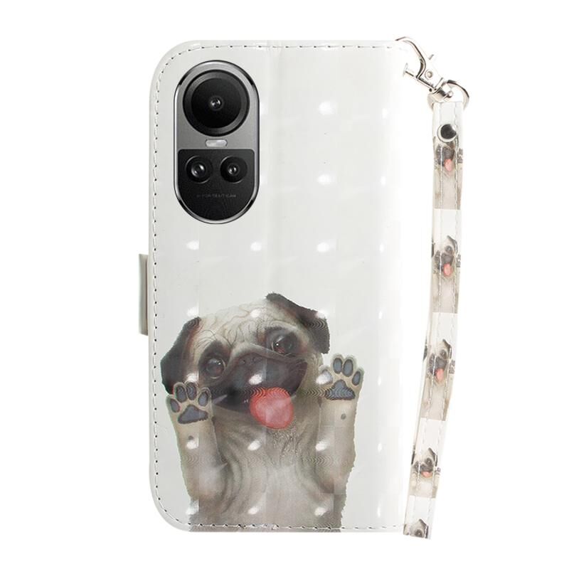 Θήκη τηλεφώνου δερμάτινη, οριζόντια, αναδιπλούμενη, με έγχρωμο 3D σχέδιο (Pug) για OPPO Reno10 5G Global/Reno10 Pro Global.