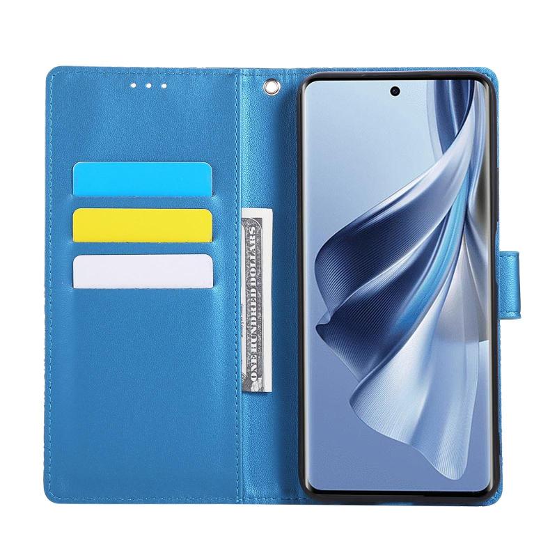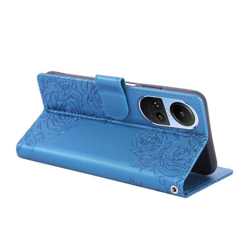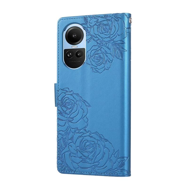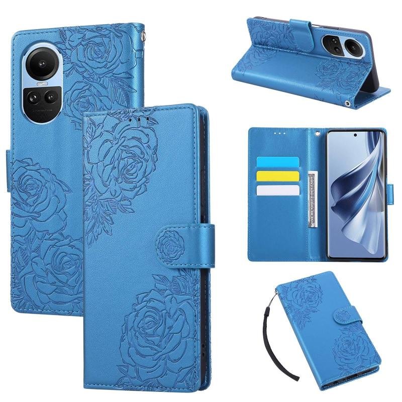 For OPPO Reno10 5G Global Rose Flower Embossed 3-Card Slots Leather Phone Case(Blue)