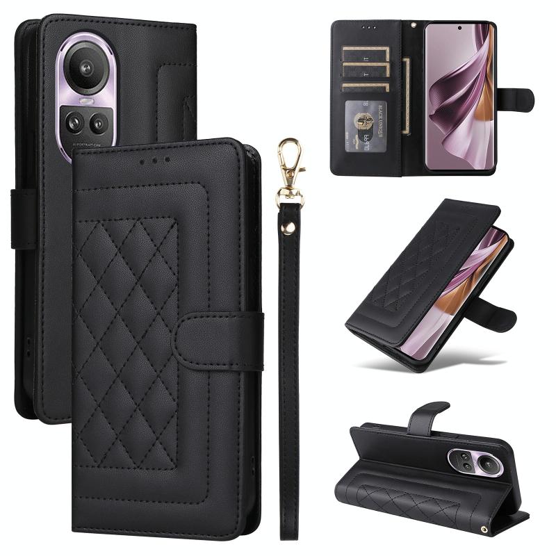 For OPPO Reno10 5G / Reno10 Pro 5G Diamond Lattice Leather Flip Phone Case(Black)