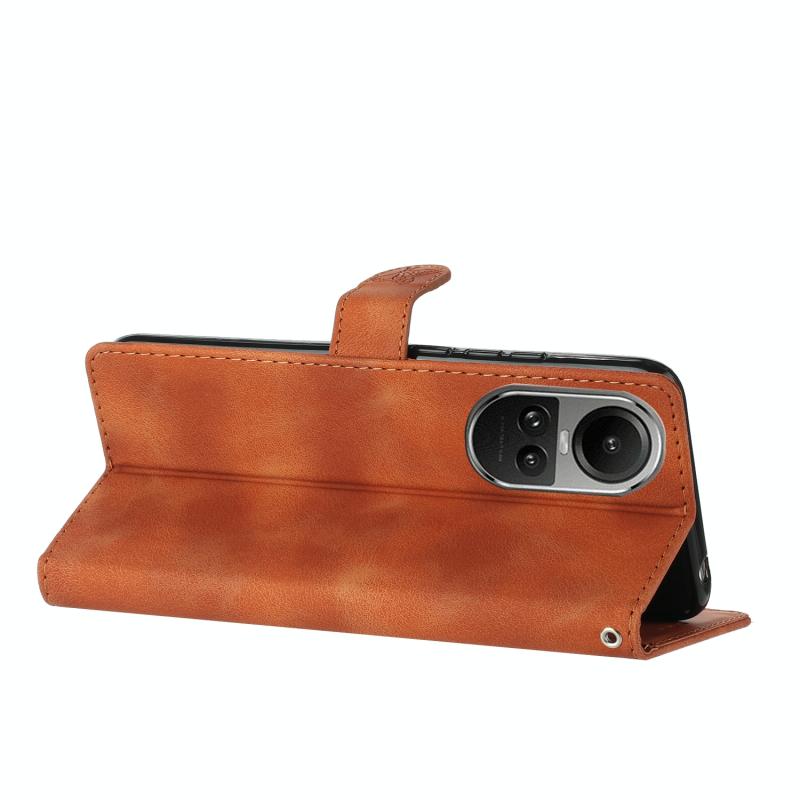 Θήκη τηλεφώνου από δέρμα με ανάγλυφο σχέδιο λουλουδιών και πεταλούδας για OPPO Reno10 5G / Reno10 Pro 5G (Καφέ)