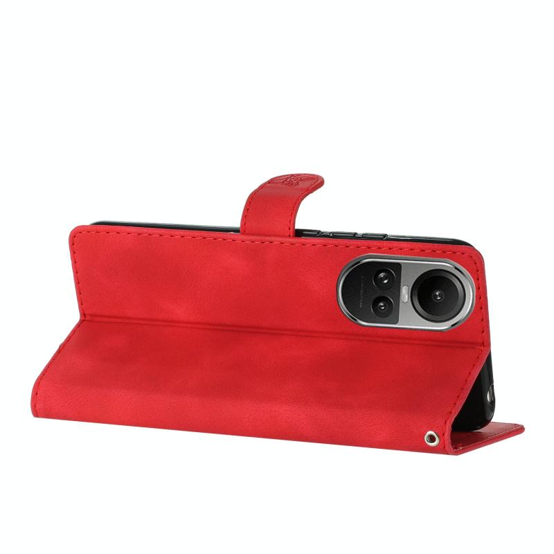 Θήκη τηλεφώνου από δέρμα με ανάγλυφο σχέδιο λουλουδιών και πεταλούδας για OPPO Reno10 5G / Reno10 Pro 5G (Κόκκινο)
