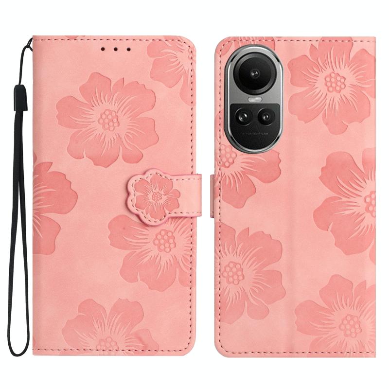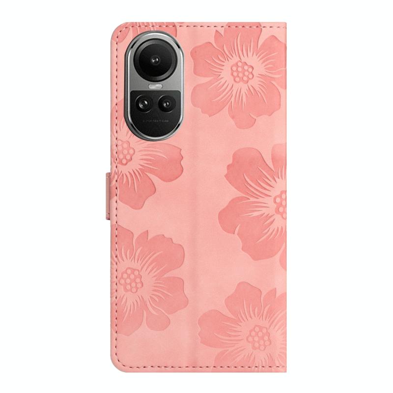Θήκη τηλεφώνου από δέρμα με ανάγλυφο σχέδιο λουλουδιών για OPPO Reno10 5G / Reno10 Pro 5G (ρόζ)