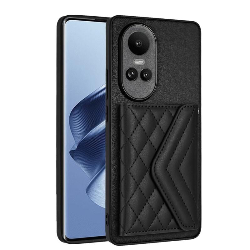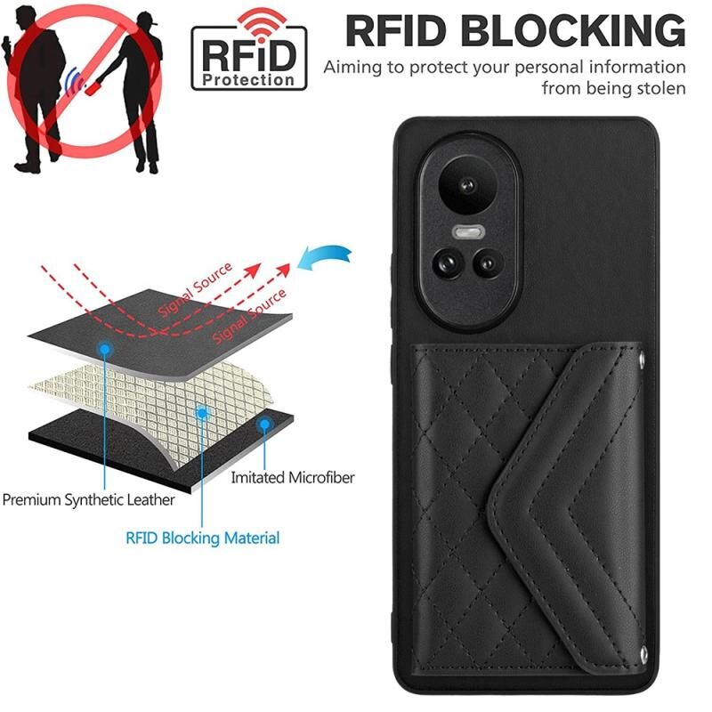 Για OPPO Reno10 5G Rhombic υφή κάρτα τσάντα RFID υπόθεση τηλεφώνου με μακρύ κορδόνι (Μαύρο)