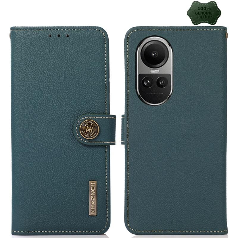 Θήκη τηλεφώνου από γνήσιο δέρμα με υφή KHAZNEH Custer RFID για OPPO Reno10 Global / 10 Pro Global (Μπλε)