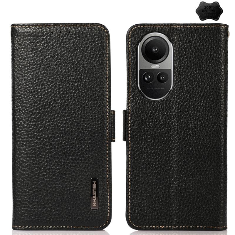 Θήκη τηλεφώνου OPPO Reno10 Global / 10 Pro Global KHAZNEH με μαγνητικό κλείσιμο στο πλάι, από γνήσιο δέρμα Litchi με προστασία RFID (Μαύρο)