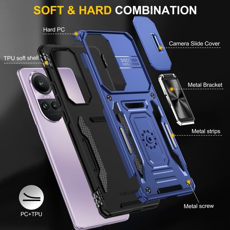 Για OPPO Reno10 Παγκόσμια θωράκιση PC + TPU Κάμερα Ασπίδα τηλέφωνο υπόθεση (Ναυτικό μπλε)