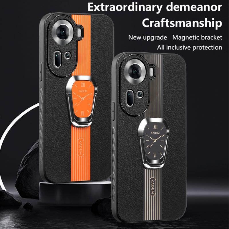 Θήκη για OPPO Reno10 Global με Δερμάτινη Υφή & Στήριξη (Μαύρο)