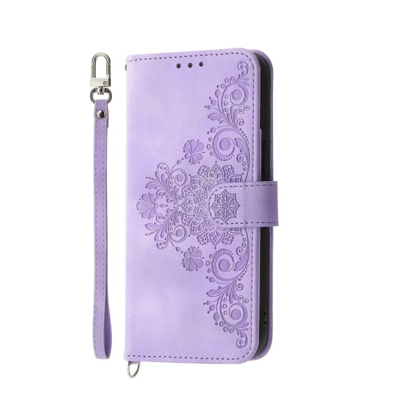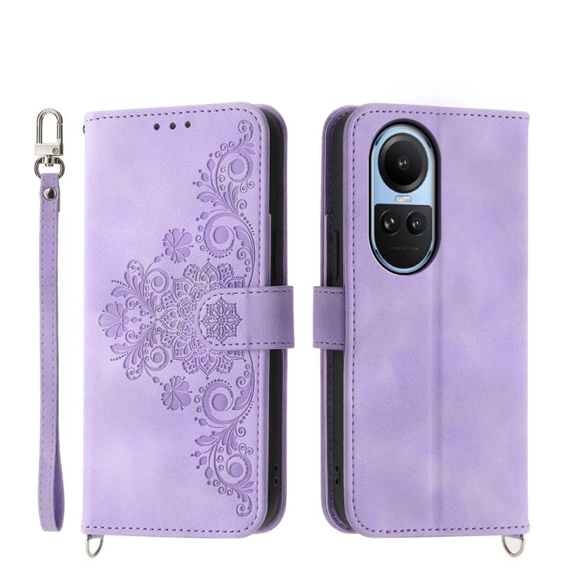 For OPPO Reno10 Global / Reno10 Pro Global Skin Feel Flowers Embossed Wallet Leather Phone Case(Purple)