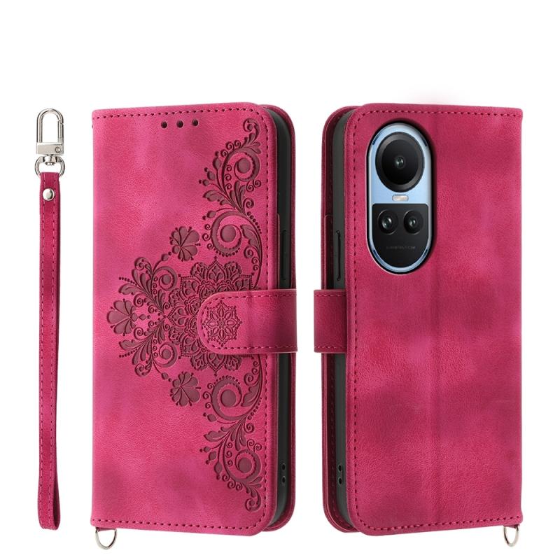 For OPPO Reno10 Global / Reno10 Pro Global Skin Feel Flowers Embossed Wallet Leather Phone Case(Wine Red)