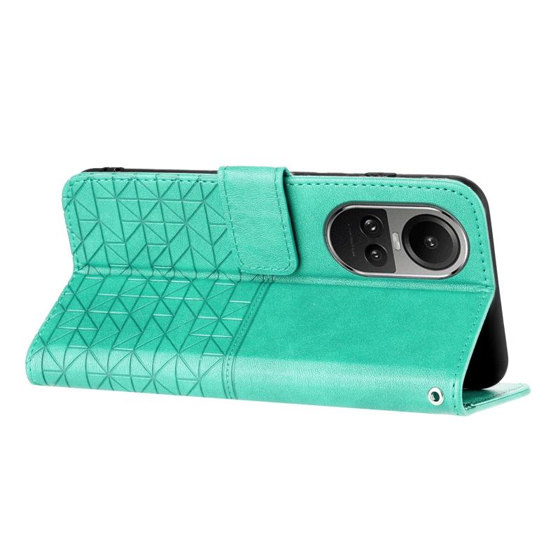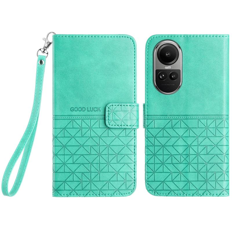 For OPPO Reno10 Global Rhombic Texture Leather Phone Case with Lanyard(Green)