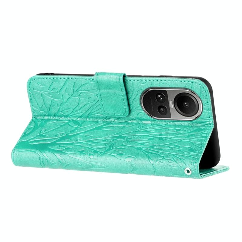 For OPPO Reno10 Global Tree Birds Embossed Pattern Leather Phone Case(Green)
