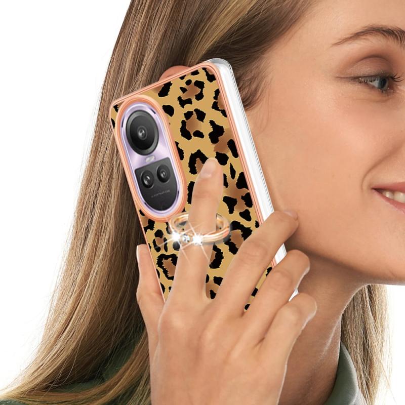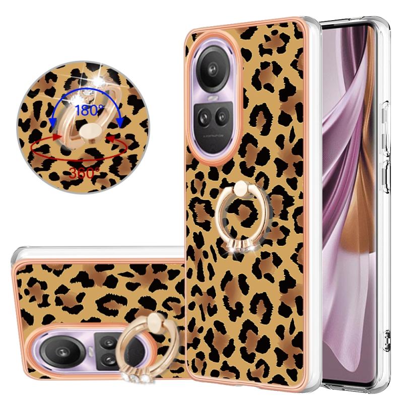 For OPPO Reno10 Pro 5G Global Electroplating Dual-side IMD Phone Case with Ring Holder(Leopard Print)