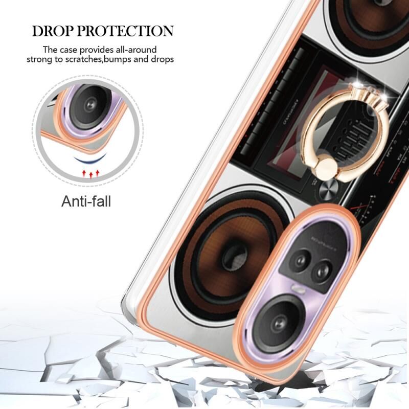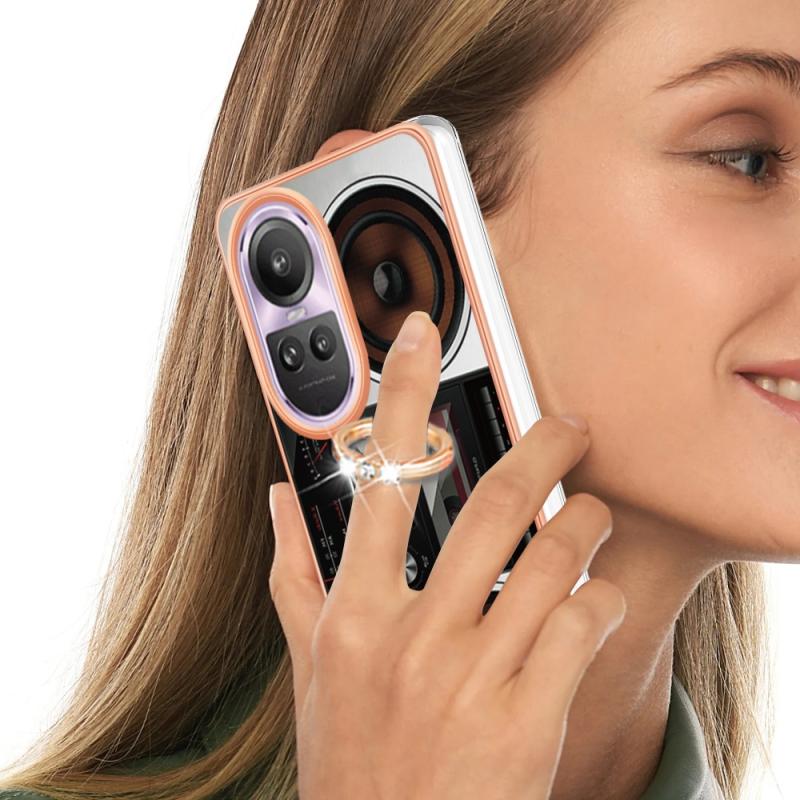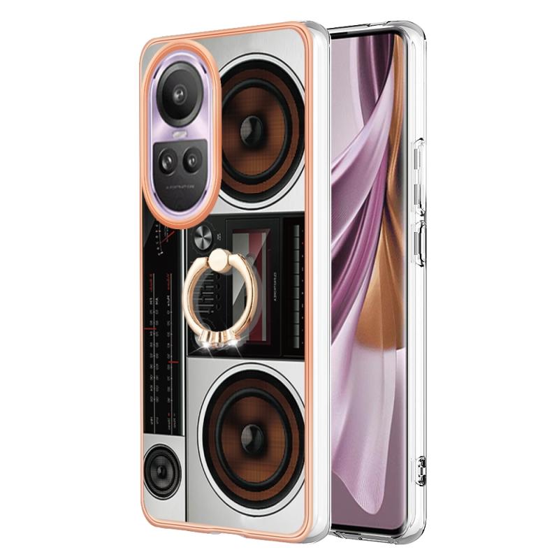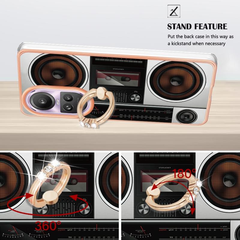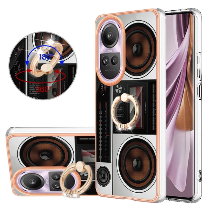 For OPPO Reno10 Pro 5G Global Electroplating Dual-side IMD Phone Case with Ring Holder(Retro Radio)