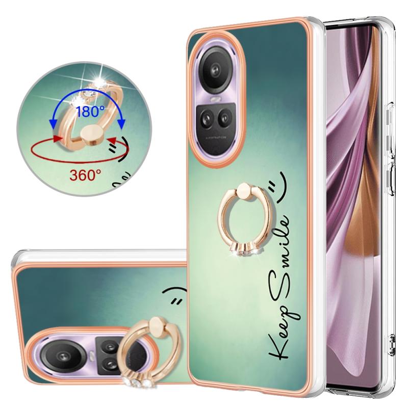 For OPPO Reno10 Pro 5G Global Electroplating Dual-side IMD Phone Case with Ring Holder(Smile)