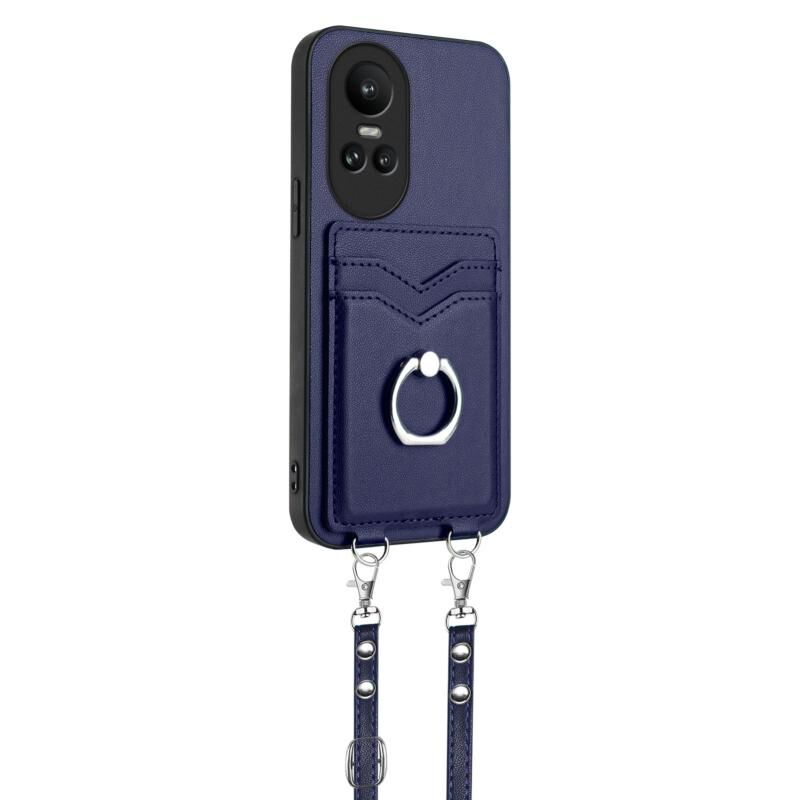 Για OPPO Reno10 Pro 5G Global R20 Crossbody σχοινί δαχτυλίδι κάρτας κάτοχος υπόθεση τηλεφώνου (μπλε)