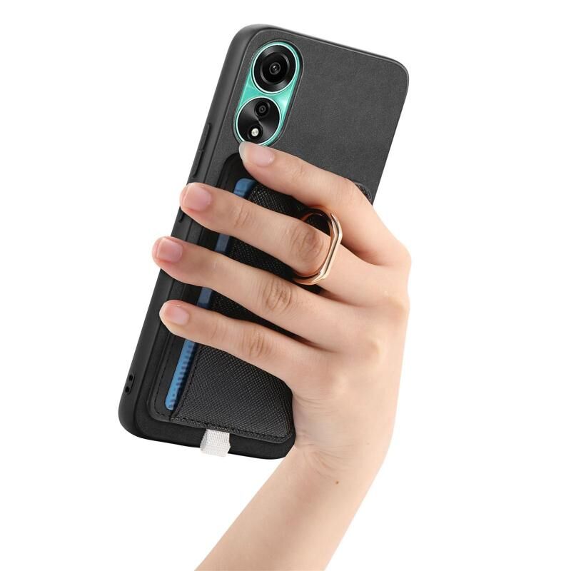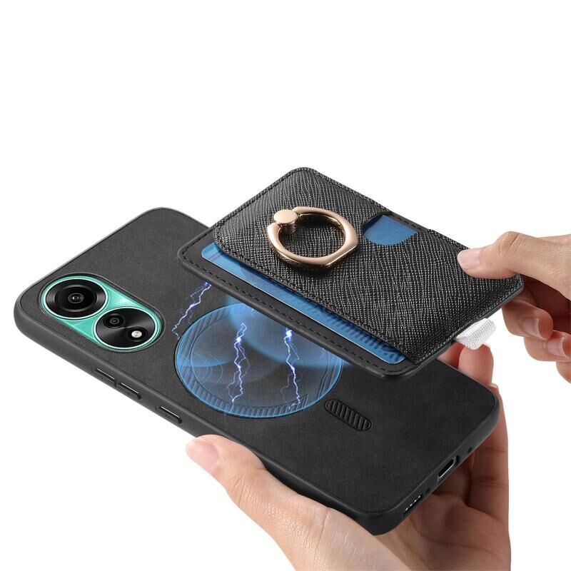 Θήκη τηλεφώνου MagSafe για OPPO Reno10 Pro+ 5G, Δερμάτινη με σχέδιο Retro, Ενσωματωμένη Κάρτα στην Πλευρά, Μπλε. (Μαύρο)