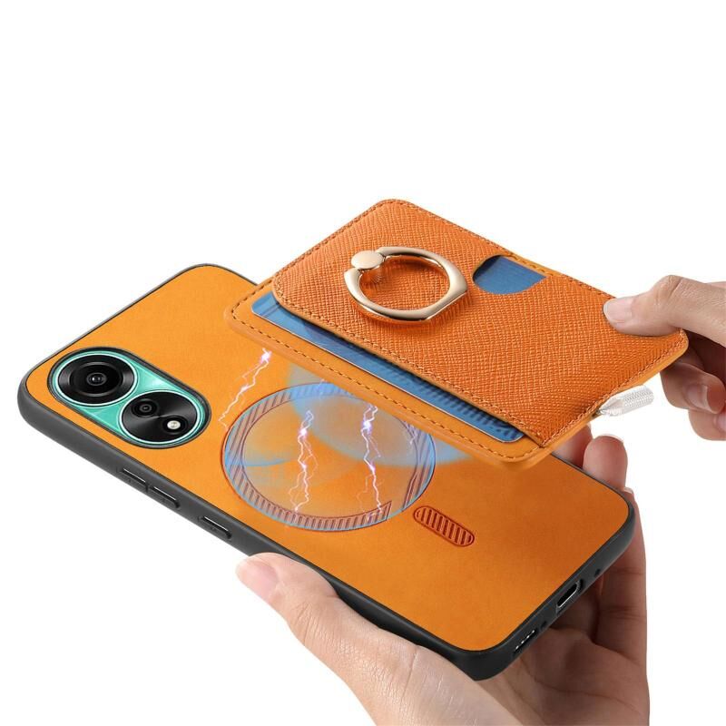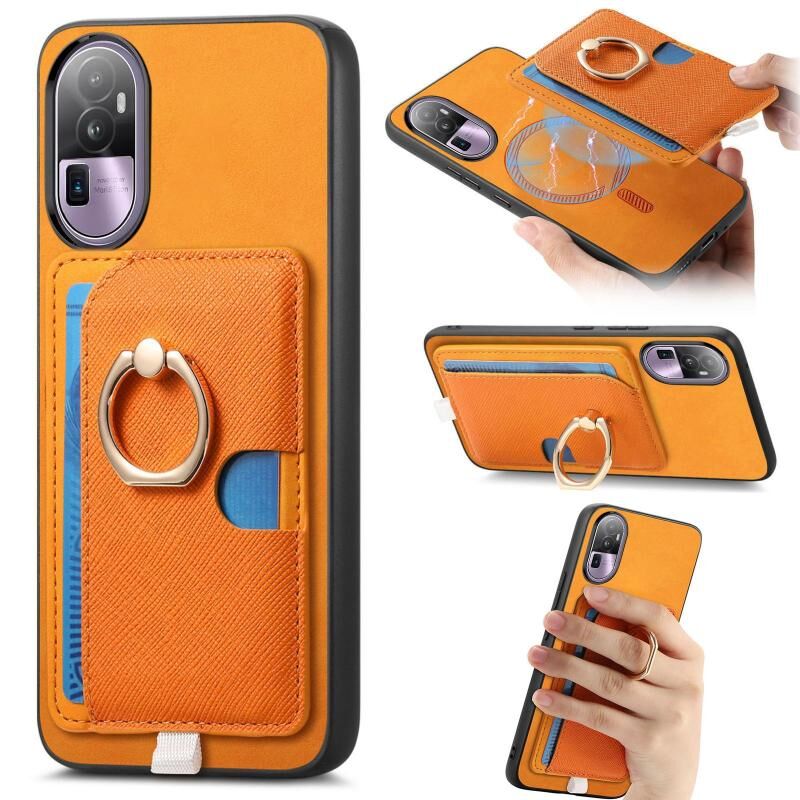 Θήκη τηλεφώνου MagSafe για OPPO Reno10 Pro+ 5G, Δερμάτινη με σχέδιο Retro, Ενσωματωμένη Κάρτα στην Πλευρά, Μπλε. (Κίτρινο)