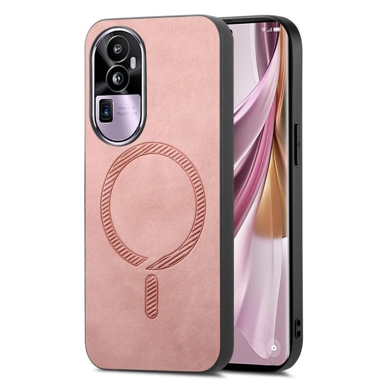 Θήκη κινητού τηλεφώνου OPPO Reno10 Pro+ 5G Retro Magsafe Μαγνητική PU Πίσω Κάλυψη (ρόζ)