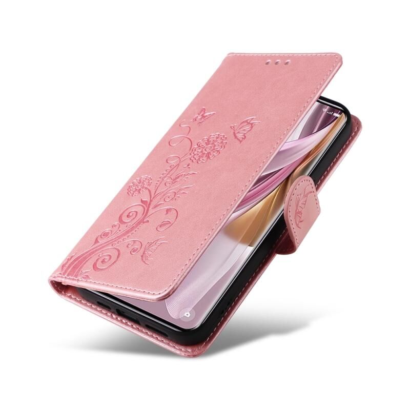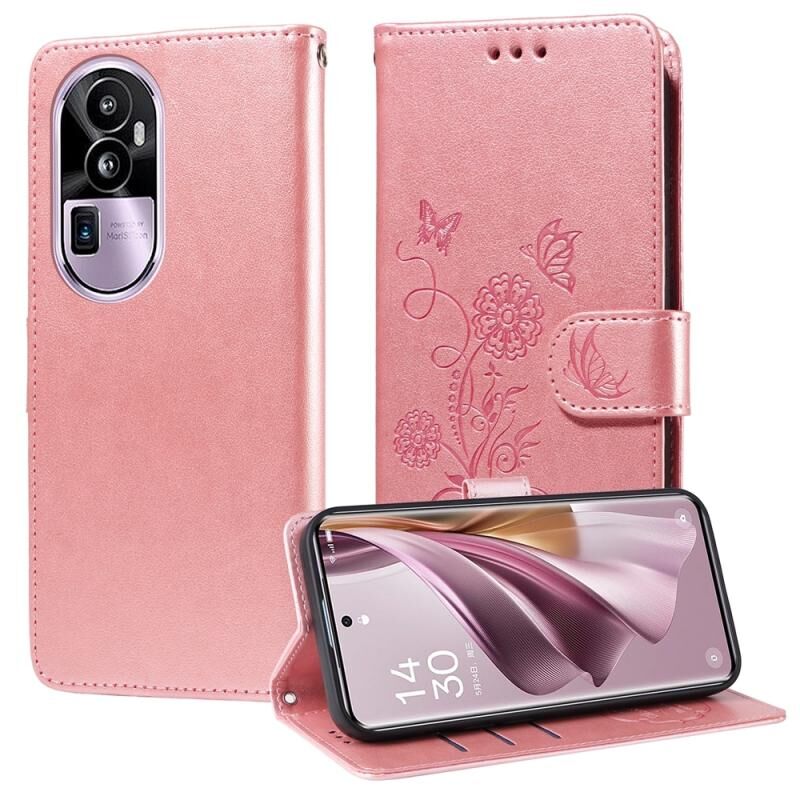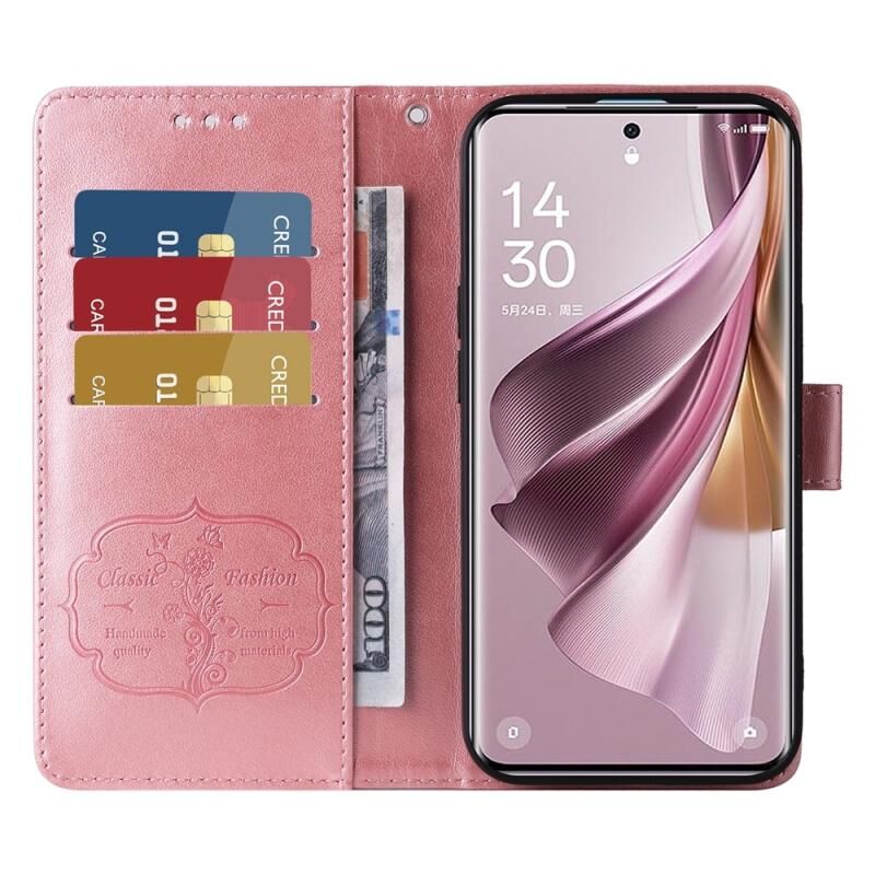 For OPPO Reno10 Pro+ Global Embossed Butterfly Flowers Leather Phone Case(Rose Gold)