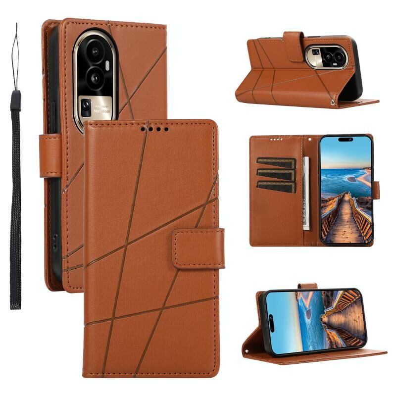 Θήκη τηλεφώνου OPPO Reno10 Pro Global από γνήσιο δέρμα PU με ανάγλυφη υφή και γραμμές (Καφέ)