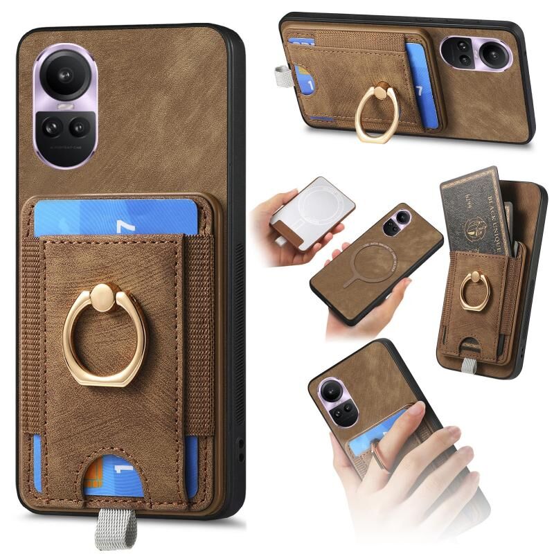 Για OPPO Reno10 Pro Global Retro Splitable μαγνητική κάρτα τσάντα δερμάτινη θήκη τηλεφώνου (Καφέ)