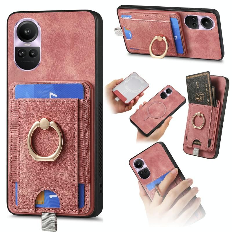 Για OPPO Reno10 Pro Global Retro Splitable μαγνητική κάρτα τσάντα τσάντα δέρμα τηλέφωνο υπόθεση (ρόζ)