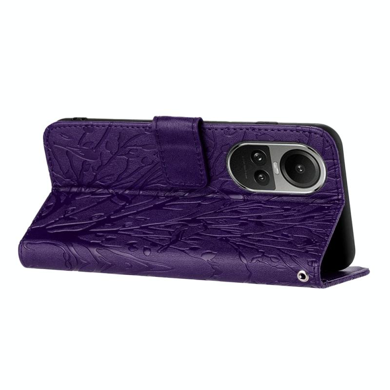 For OPPO Reno10 Pro Global Tree Birds Embossed Pattern Leather Phone Case(Purple)