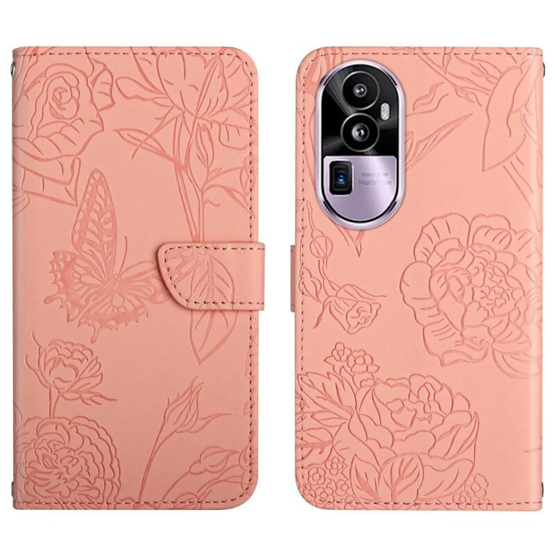 Θήκη τηλεφώνου από δέρμα με ανάγλυφο σχέδιο πεταλούδας και αίσθηση δέρματος για OPPO Reno10 Pro+ HT03 (Μωβ)